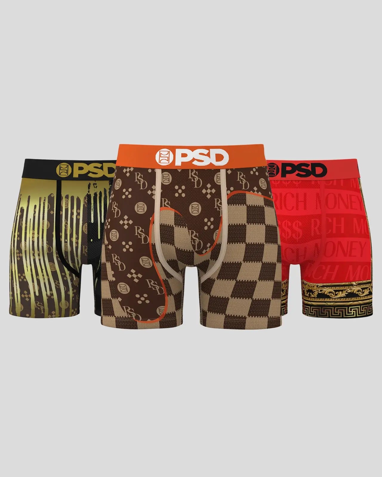 The pairs of the Emblem Lux 3 Pack include our ultra-comfortable Signature WaistBand, a breathable MicroMesh pouch, and four-way stretch. The PSD 5??? Mid Length Briefs won’t roll or ride and were built for everything, from everyday wear to your toughest workouts.