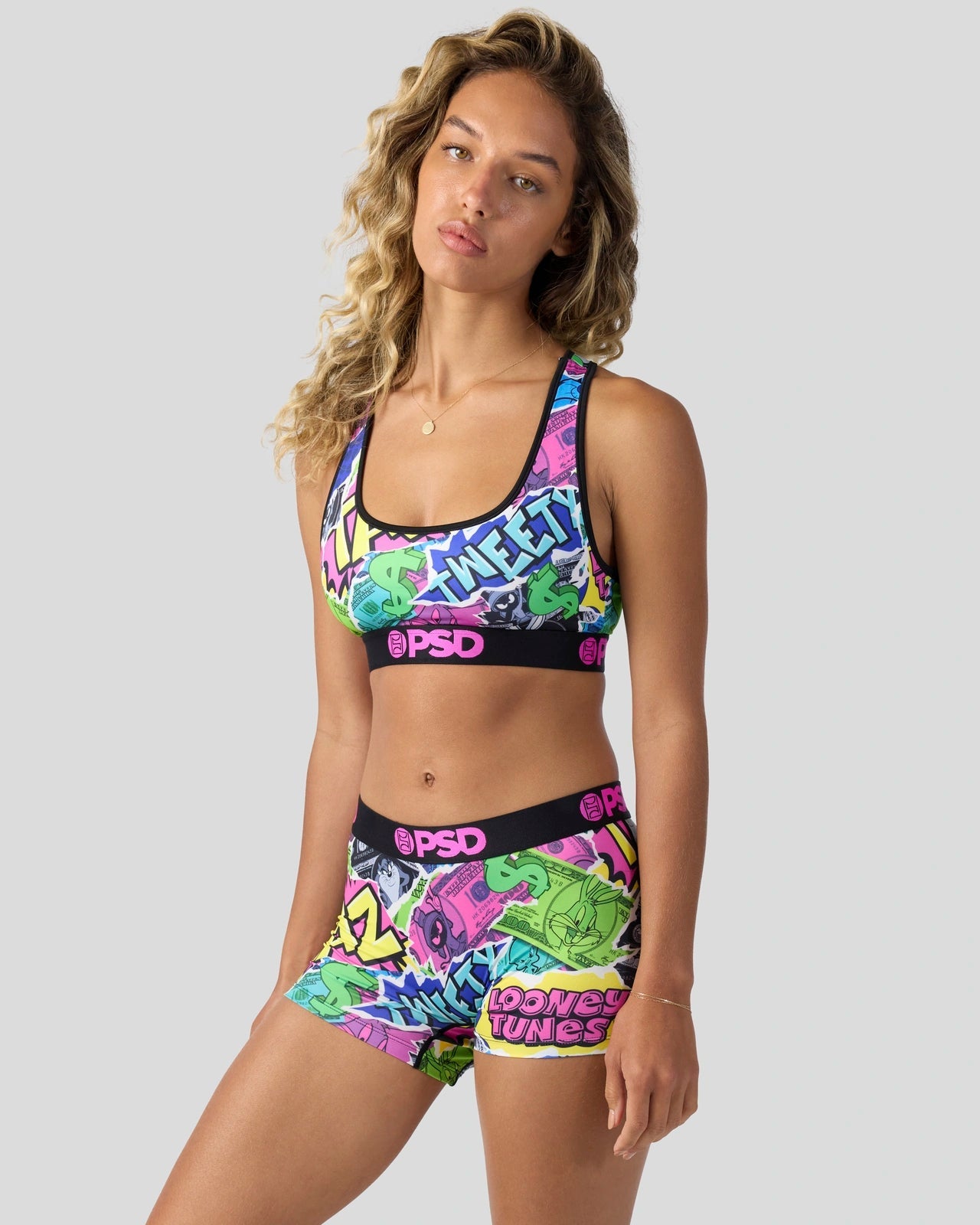 Get your Bugs bag with this new money-themed look from Looney Tunes x PSD. The Looney Money Boy Short is made from a silky poly blend with a comfortable full coverage, keep-you-in fit. The PSD boy shorts are perfect for everyday wear and working out.