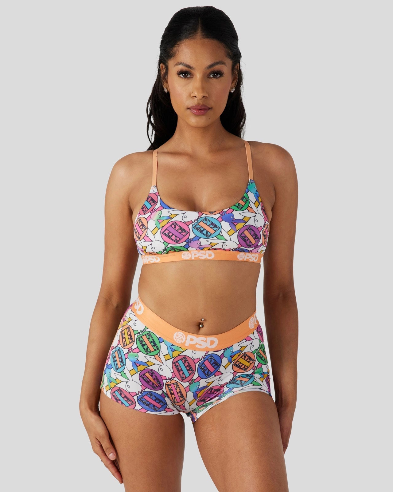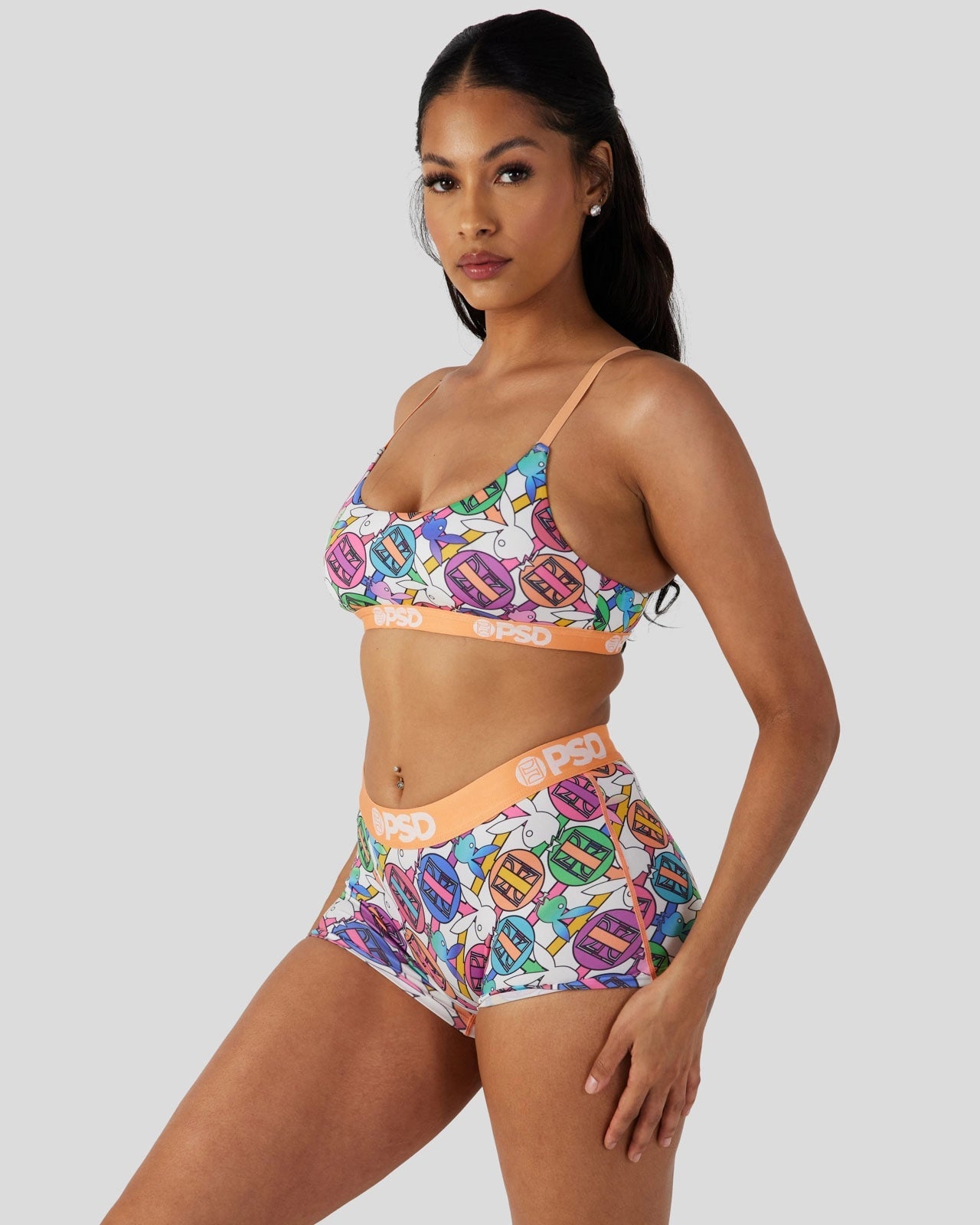 Pretty in pastel, the latest from Playboy x PSD is the perfect way to add some spring to your intimates drawer. Made of our silky poly blend, the PSD Geo Scoop Bralette almost feels like you’re not wearing a bra at all. It???s fully lined and features include adjustable straps, a cute scoop neckline, and a soft microfiber band that won???t ride or rub.