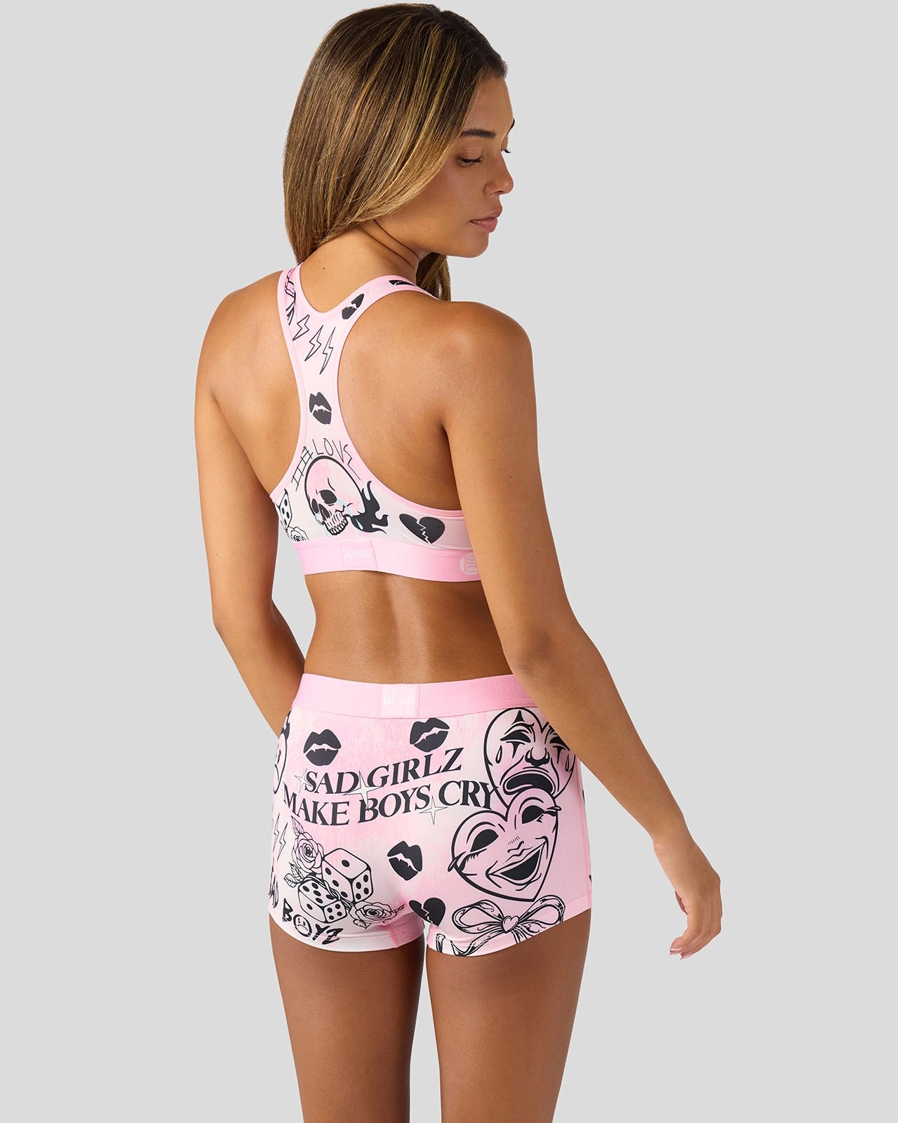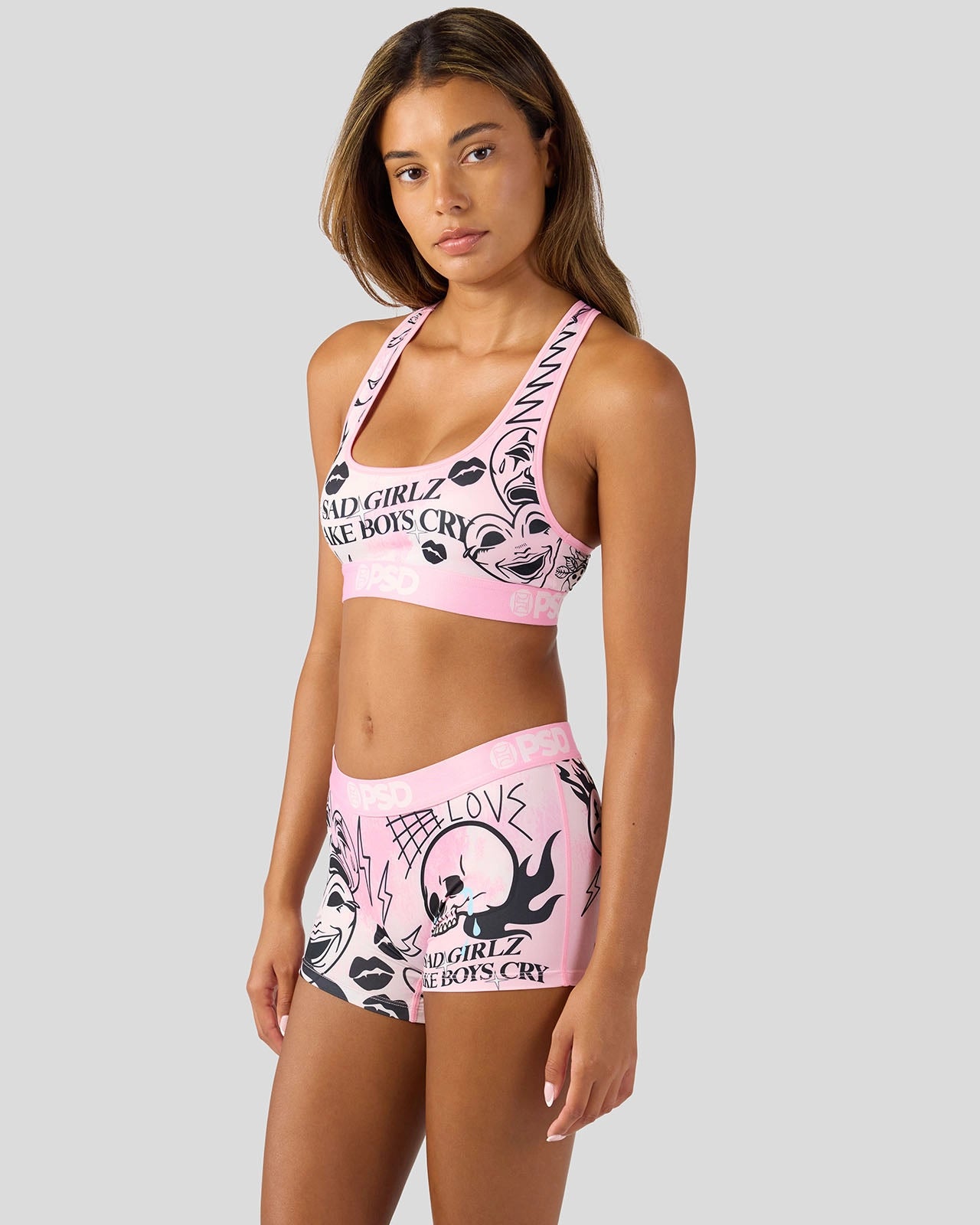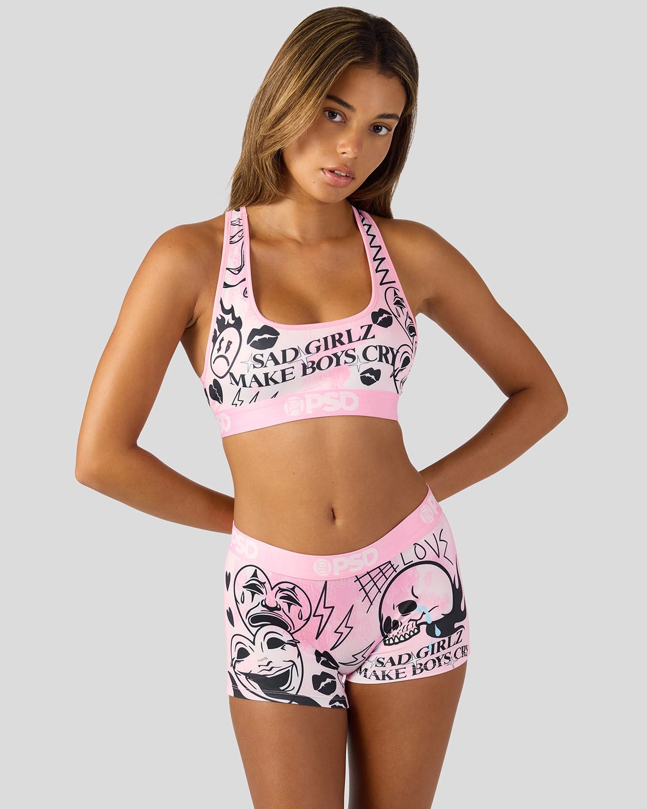 Introducing Sad Girlz x PSD. As an extension of Junior H???s Sad Boyz, Sad Girlz carries the same raw emotion and attitude. Owning heartbreak, humor, and confidence, and built for those who laugh, cry, and thrive through it, the Laugh and Cry Boy Short is made from a silky poly blend with a comfortable full-coverage, keep-you-in fit. The PSD boy shorts are perfect for everyday wear and working out.