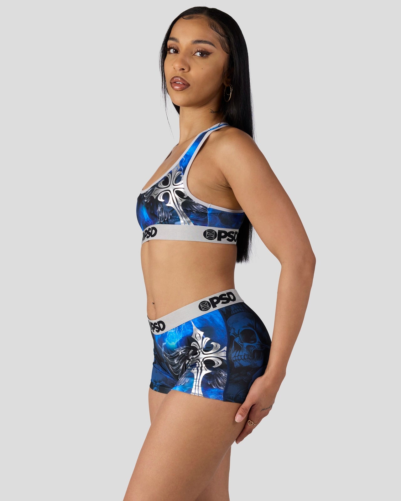 The Silver Wing Sports Bra is made from a silky poly blend that???s breathable yet slightly compressive, bringing you the comfort and support you need for everything you get into.