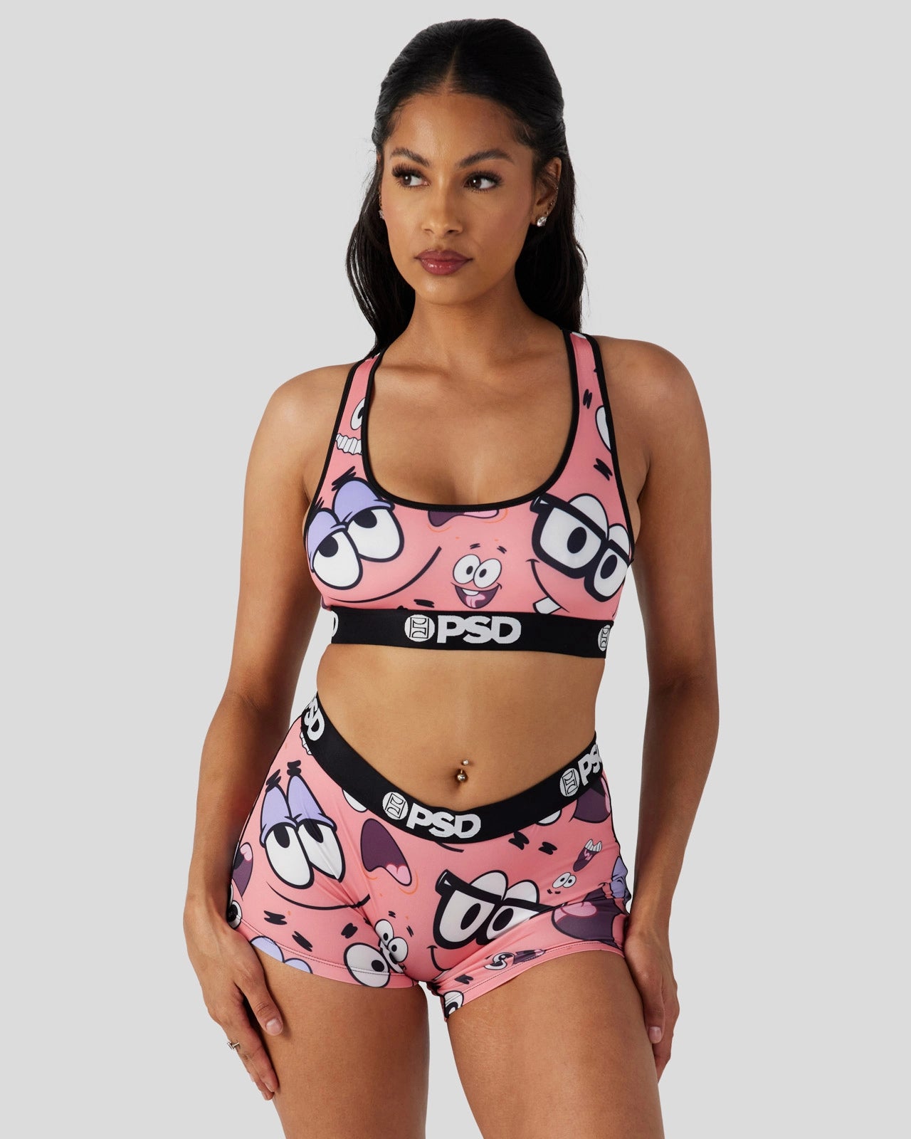 The latest from SpongeBob SquarePants x PSD features the many faces of everyone???s favorite starfish. The Patrick Faces Sports Bra is made from a silky poly blend and is breathable yet slightly compressive, bringing you the comfort and support you need for everything you get into.