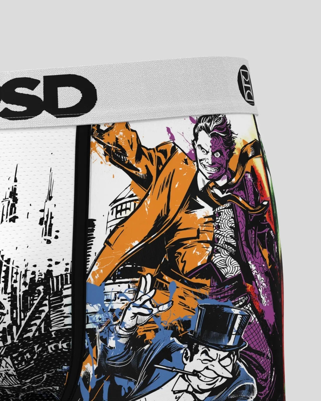 Don???t miss this drop from DC x PSD. The Gotham Villains briefs feature your favorite Batman bad guys in a straight-from-the-comics print and include our ultra-comfortable Signature WaistBand, a breathable MicroMesh pouch, and four-way stretch. The PSD 7??? Standard Length Briefs won???t roll or ride and were built for everything, from everyday wear to your toughest workouts.