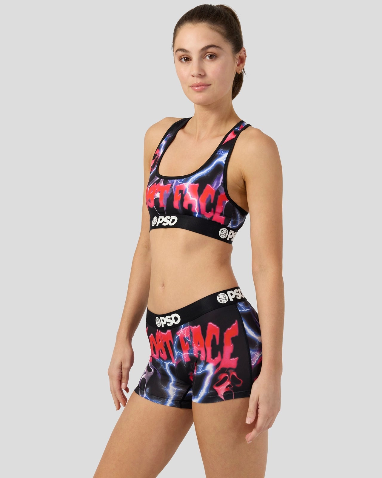 Do you like scary movies? Don’t miss this chilling new drop from Ghost Face x PSD. The Hype Boy Short is made from a silky poly blend with a comfortable full coverage, keep-you-in fit. The PSD boy shorts are perfect for everyday wear and working out.