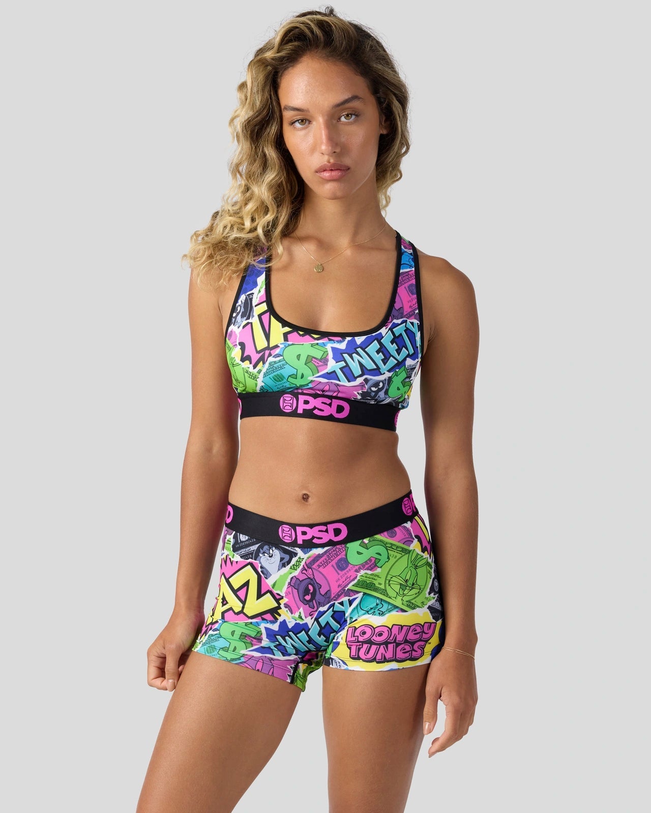 Get your Bugs bag with this new money-themed look from Looney Tunes x PSD. The Looney Money Boy Short is made from a silky poly blend with a comfortable full coverage, keep-you-in fit. The PSD boy shorts are perfect for everyday wear and working out.