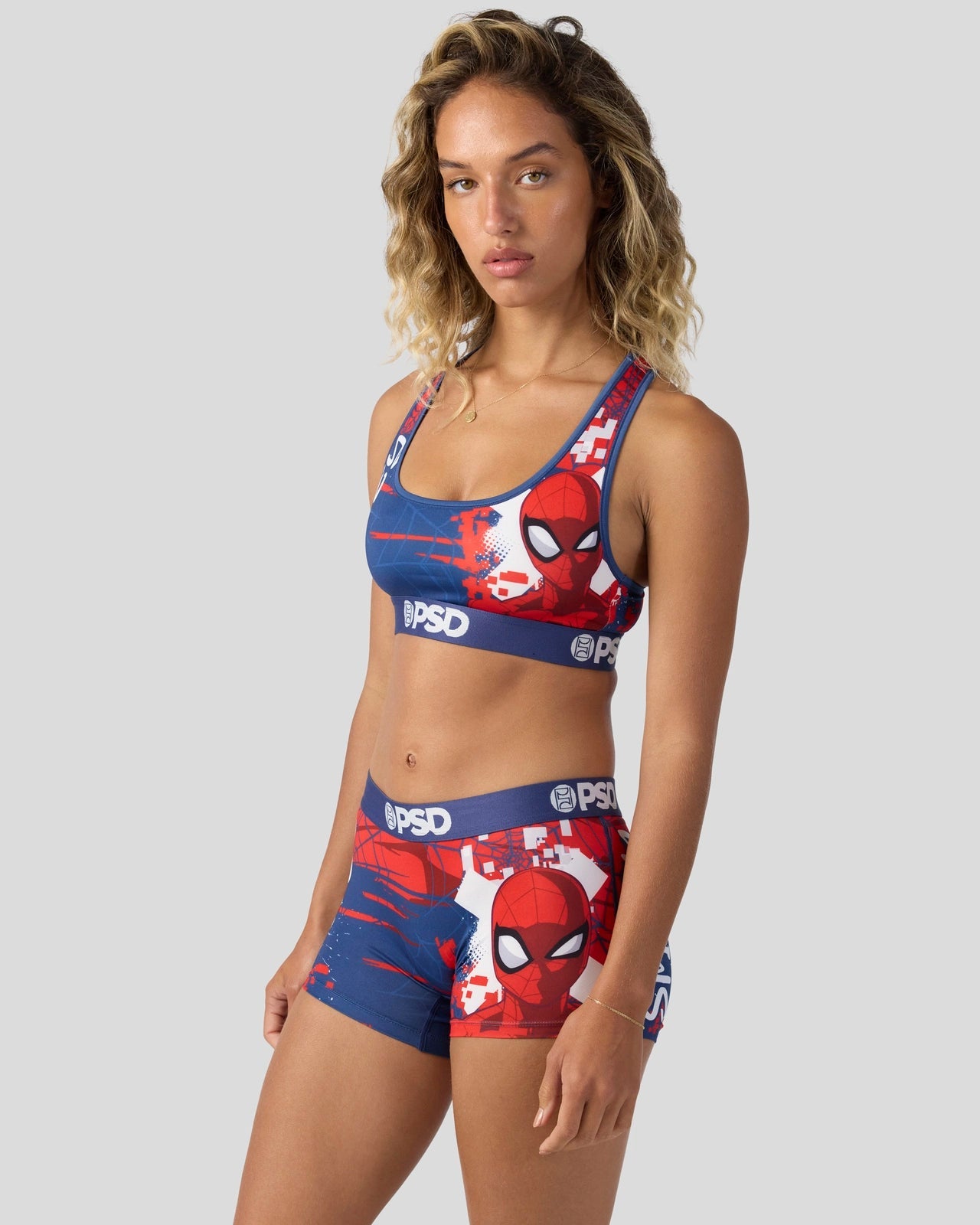 If your Spidey senses are tingling, it???s probably because you need this new drop. The Spider-Man Senses Sports Bra is made from a silky poly blend and is breathable yet slightly compressive, bringing you the comfort and support you need for everything you get into.
