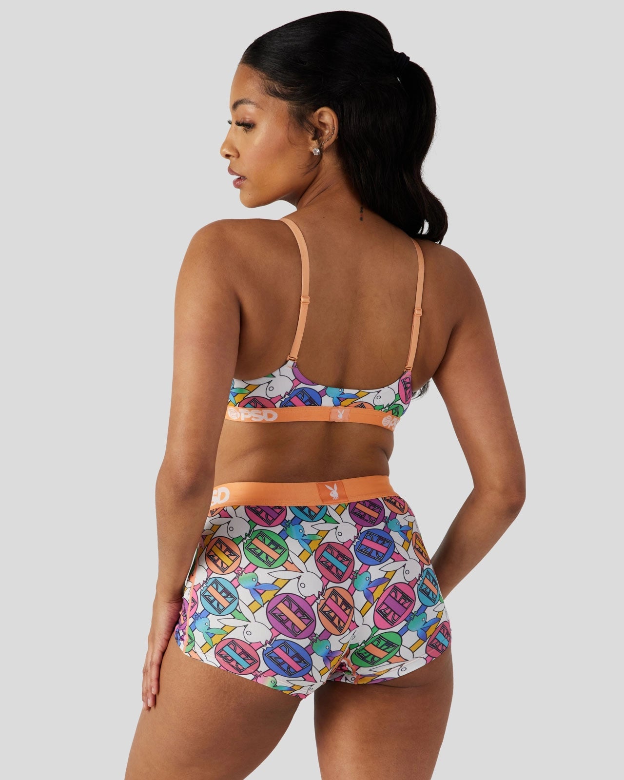 Pretty in pastel, the latest from Playboy x PSD is the perfect way to add some spring to your intimates drawer. Made of our silky poly blend, the PSD Geo Scoop Bralette almost feels like you’re not wearing a bra at all. It???s fully lined and features include adjustable straps, a cute scoop neckline, and a soft microfiber band that won???t ride or rub.