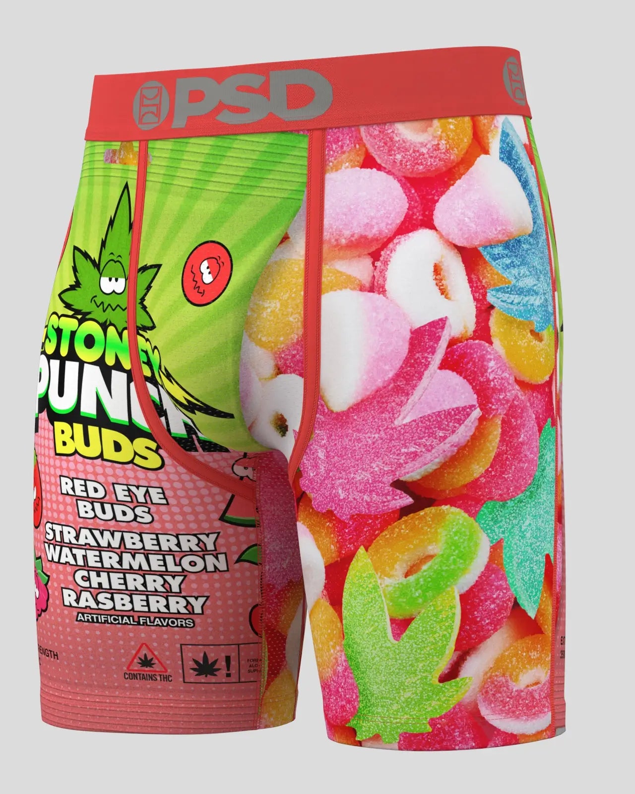 Got the munchies? Now you will. The Stoney Punch Buds briefs include our ultra-comfortable Signature WaistBand, a breathable MicroMesh pouch, and four-way stretch. The PSD 7??? Standard Length Briefs won’t roll or ride and were built for everything, from everyday wear to your toughest workouts.